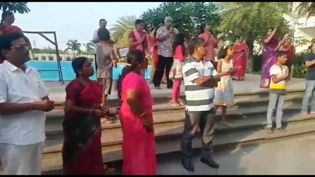 செம்பரம்பாக்கம் ஊராட்சியில் தனியார் குடியிருப்பு வளாகத்தில் குடும்பத்தினரோடு ஒன்றிணைந்து தற்போதுள்ள சூழலுக்கு தன்னலமற்ற பணியாற்றும் அனைவரையும் பாராட்டி கைதட்டினர்