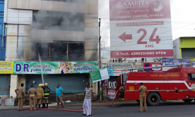 ஆவடி காமராஜர் சிலை அருகே இயங்கி வரும் தனியார் சூப்பர் மார்க்கெடில் ஏற்பட்ட தீடீர் தீவிபத்தை தீயணைப்பு வீரர்கள் போராடி அணைத்தனர்.