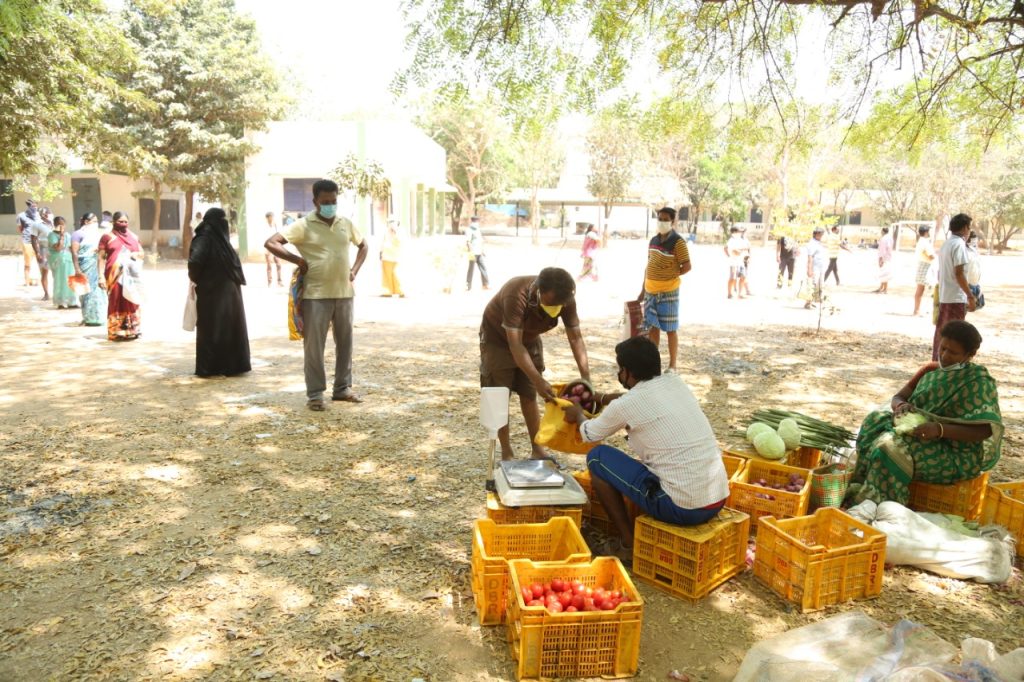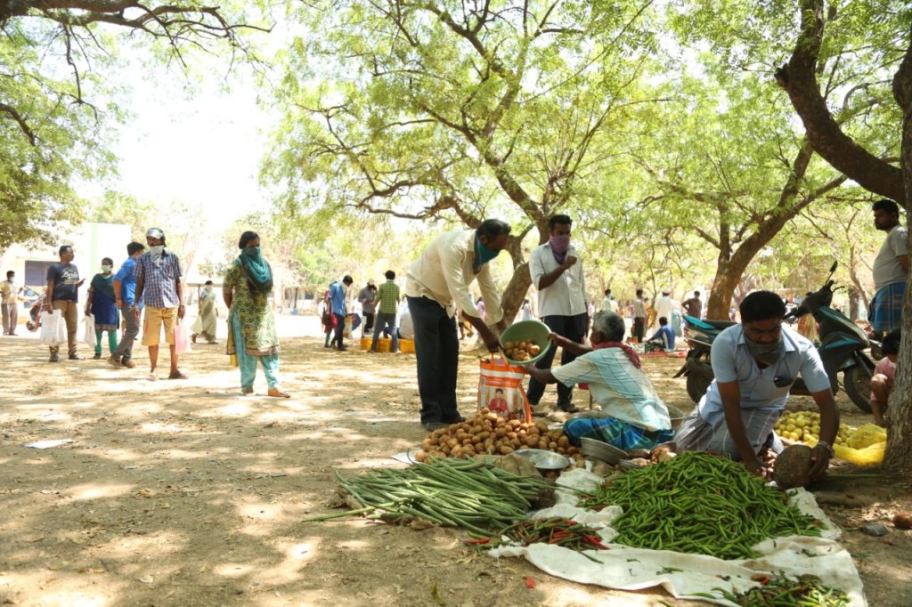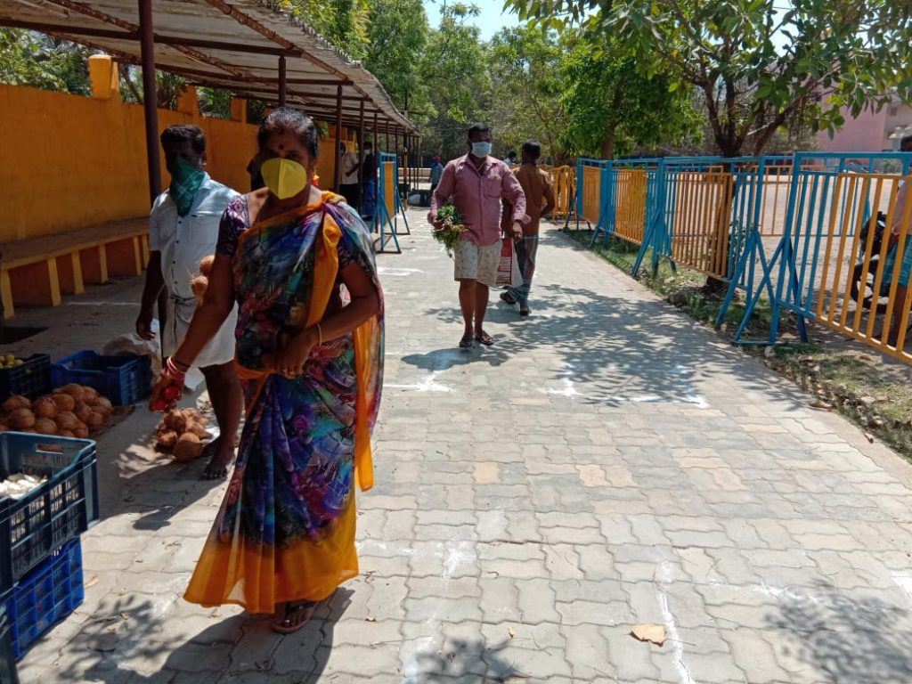 பொது மக்கள் ஒரே இடத்தில் கூடுவது தவிர்க்கமுடியும் கொரோனோ வைரஸ் பொது மக்கள் பாதுகாக்க வேண்டும். ஒவ்வொரு பொதுமக்களும் தங்களுக்கு ஏற்பட்டுள்ள இந்த எதிர்பாராத ஒரு சூழ்நிலையில் எல்லா பொதுமக்களும் வரிசையில் நின்று இடைவெளிவிட்டு இந்தp கட்டங்களுக்கு நடுவே நின்று பொறுமையாக தன்னுடைய காய்கறி வாங்கி செல்கின்றனர்.