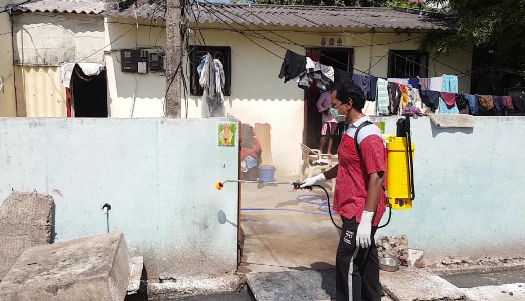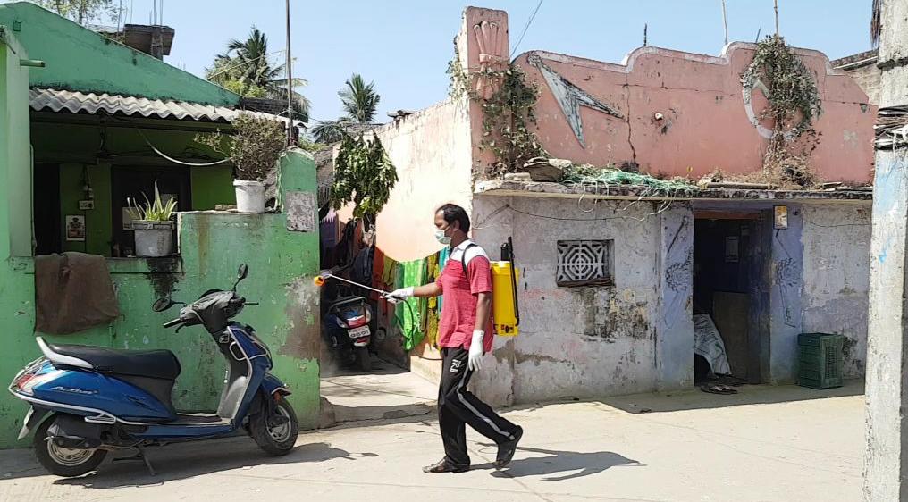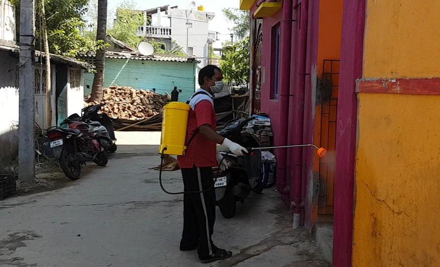 வீடு வீடாக சென்று கிருமிநாசினி தெளித்து
