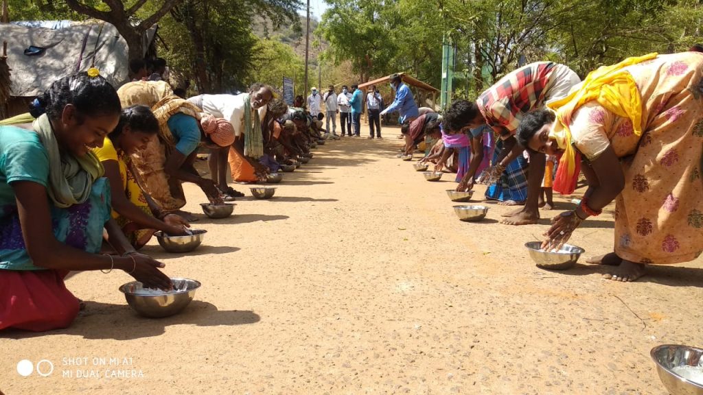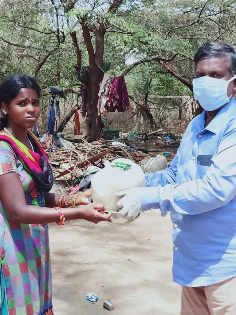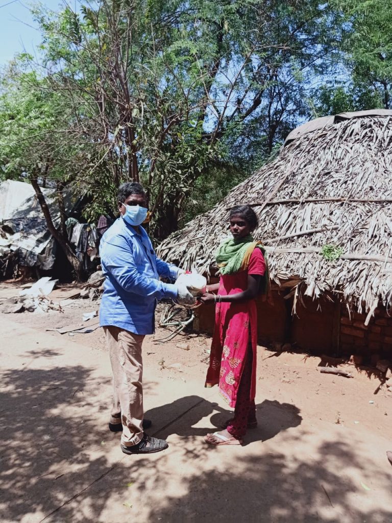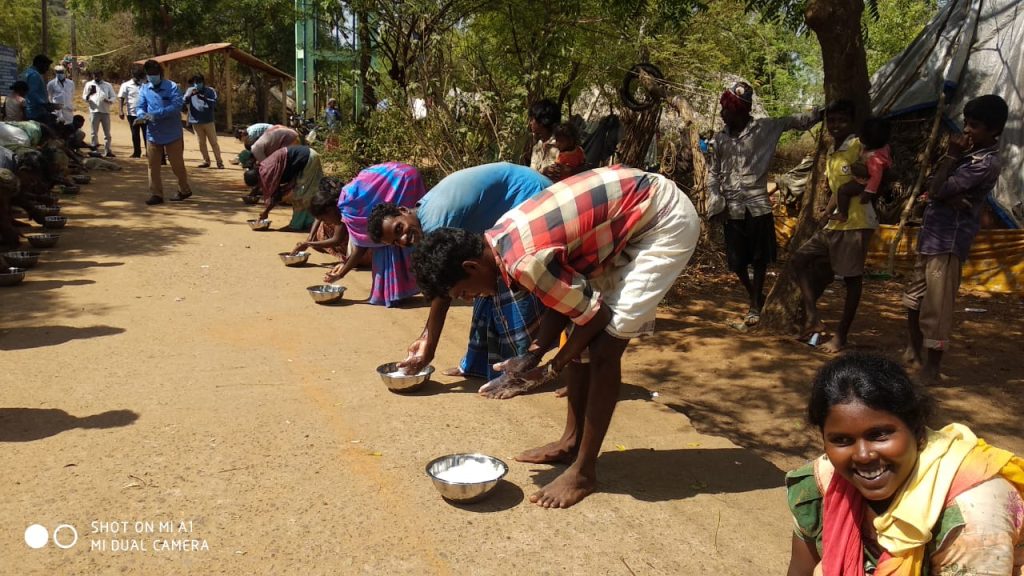 30/03/2020 திங்கள். இன்று காலை செங்கல்பட்டை அடுத்துள்ள உள்ள பழவேலி கிராமத்தில் வசிக்கும் இருளர்பழங்குடி மக்களுக்கு கொரானா தொற்று எதனால் வருகிறது என்றும், எப்படி பரவுகிறது என்றும் சொல்லிக்கொடுக்கபட்டது. மேலும் தமது கைகளை சுத்தமாக வைத்துக் கொள்ள வேண்டியதன் அவசியத்தைப்பற்றியும் ஒருவொருக்கொருவர் இடைவெளி விட்டு நிற்பதன் ( இருப்பதின் ) அவசியம் குறித்தும் விழிப்புனர்வு ஏற்படுத்தி செயல்முறை பயிற்ச்சியும் அளிக்கப்பட்டது. சிறியவர், பெரயவர் அனைவரும் தமது கைகளை கழுவி சுத்தப்படுத்திக் கொண்டனர்