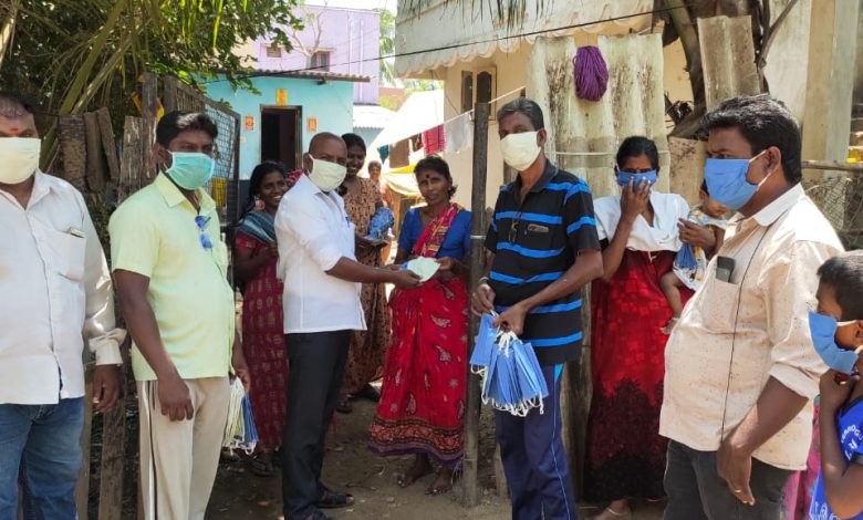 வீடு வீடாகச் சென்று முக கவசங்களை வழங்கிய விடுதலை சிறுத்தைகள் கட்சியினர்.