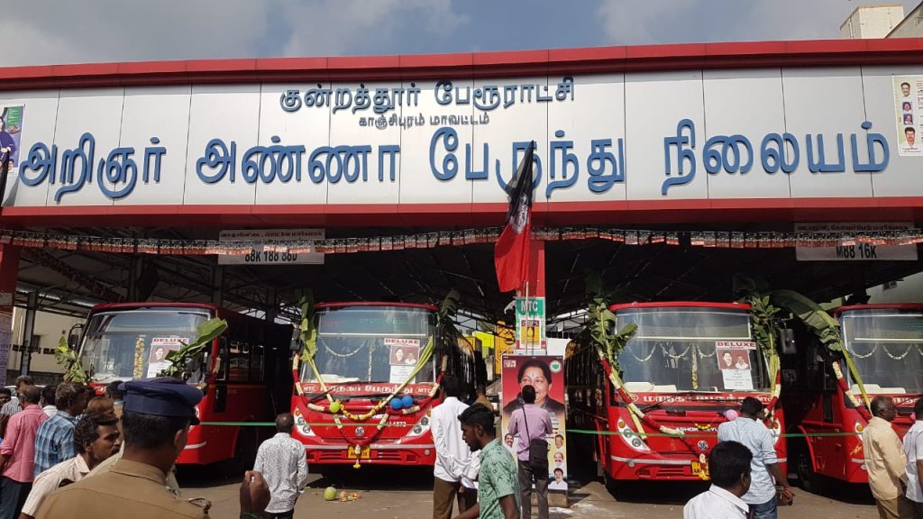 ஸ்ரீபெரும்புதூர் தொகுதிக்குட்பட்ட குன்றத்தூர் பேருந்து நிலையத்தில் புதிதாக நான்கு சொகுசு பேருந்து களை பொதுமக்கள் பயன்பாட்டிற்கு குன்றத்தூர் ஒன்றிய செயலாளரும், ஸ்ரீபெரும்புதூர் எம்எல்ஏவுமான மதனந்தபுரம் கே பழனி அவர்கள் கொடியசைத்து துவக்கி வைத்தார்.